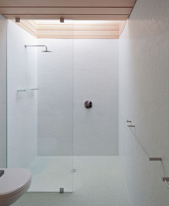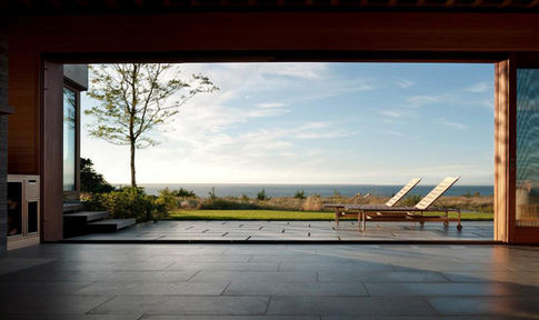 This modern Chappaquiddick property unites locally sourced materials, sustainable features, and natural elements across four structures: the main residence, garage, storage shed, and a boat house. Designed with thoughtful regard to the environment surrounding the home, the natural cedar exterior blends seamlessly with the elements. Lift and slide window units created by a local window maker open wide to eliminate the distinctions between indoor and outdoor living, filling the home with panoramic views and fresh ocean breezes.